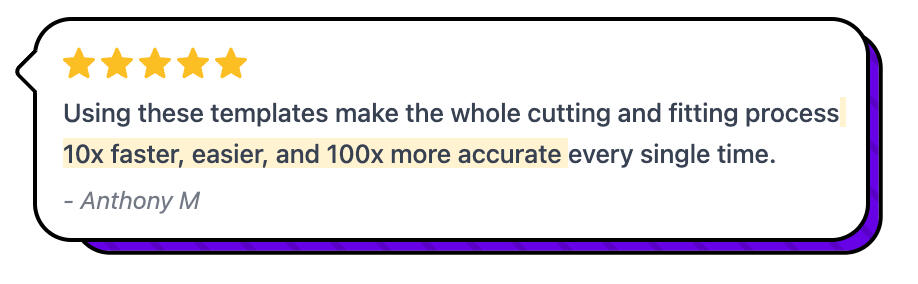 Just look up the length you need and place the templates where it tells you. Perfect CAD-level fitment every time—zero guesswork required.($55 Value)