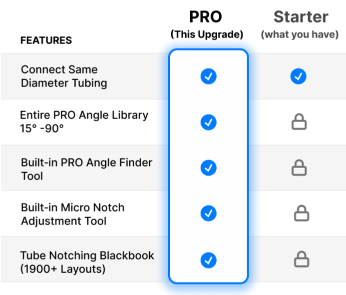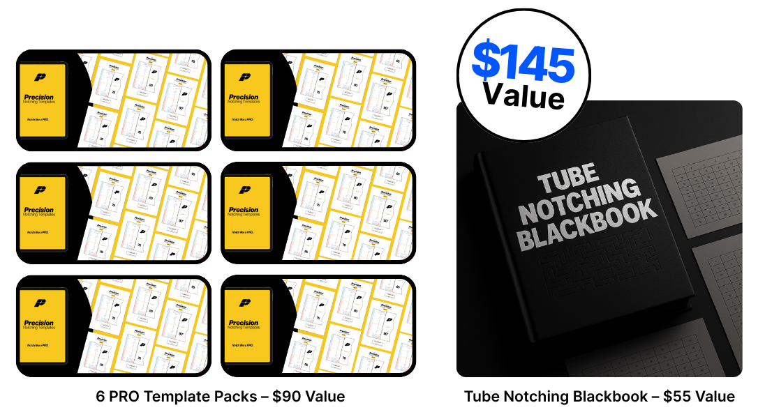 This PRO Fitment Suite does not include the full tube notching course or the extra dashboards from the $75 Core Bundle. Just the templates so you can get building without extra cost.