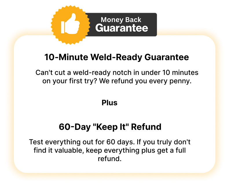 This is the no-fluff version of our system: you get all 6 same-size notching kits inside our $75 Core Kits Bundle so you can notch and weld this weekend. But, No course, no extras like the Core bundle — which is why you get it for $29 instead.